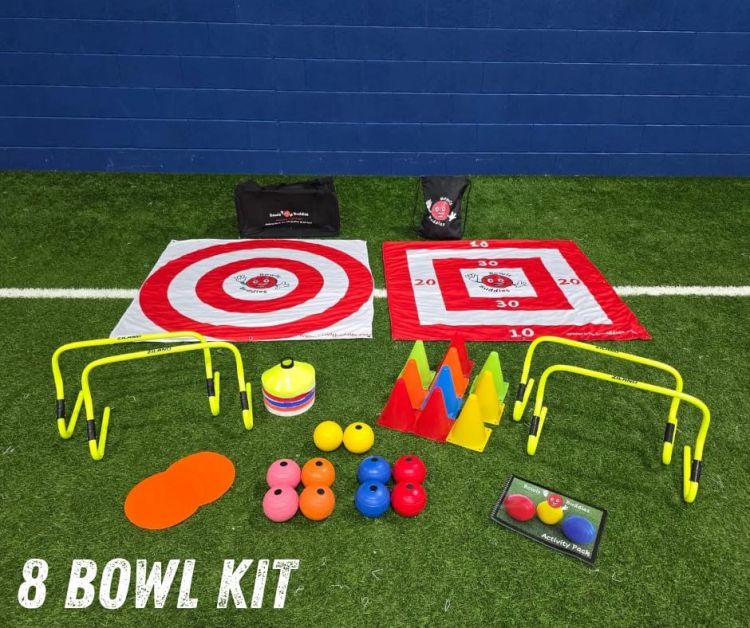 The kit contains 8 of our specially designed Bowls Buddies Bowls which are designed to work on all surfaces, including indoor smooth flat surfaces. The bowls all have a bias like traditional bowls and are made from a slightly spongy material and have a ridging on the running surface to enable them to stop that bit quicker on smooth surfaces.
