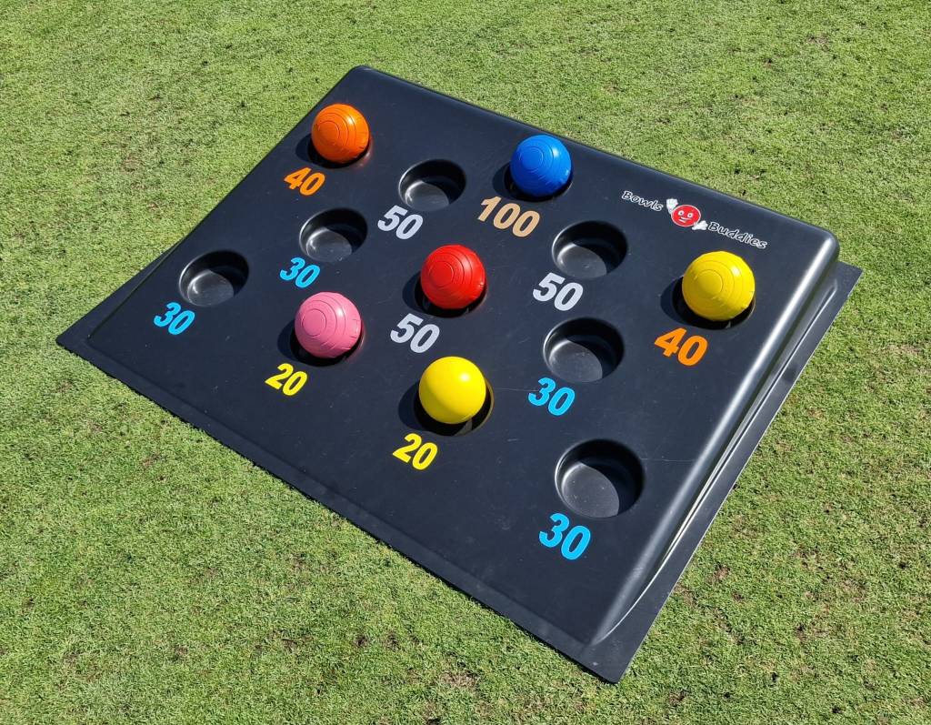 Our Target Wedge is manufactured exclusively for Bowls Buddies in the UK. These can be used with normal bowls as well as Bowls Buddies bowls and are sure to be a hit with adults and children alike. You can also add on a large drawstring bag to store the Target Wedge in and protect it from scratches etc whilst storing and transporting it. Click on the link below for more details.