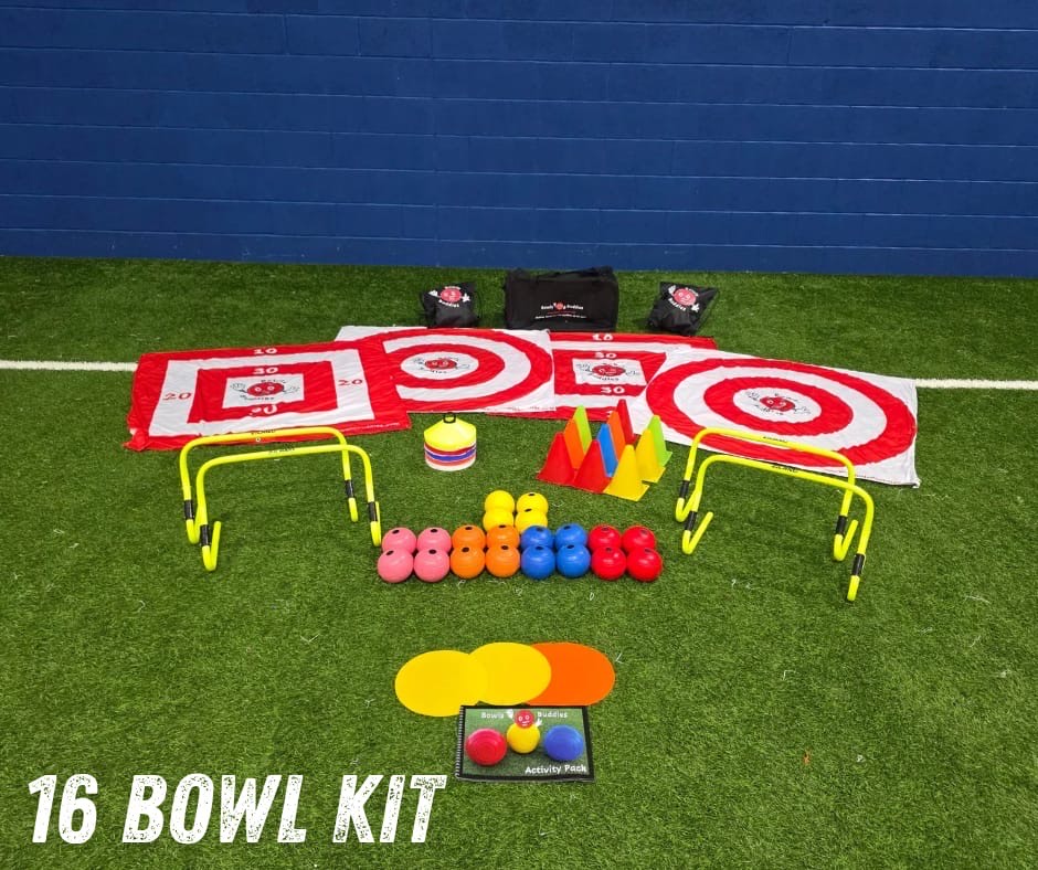 This kit is ideal for small groups of children and adults. You get 16 Bowls Buddies Bowls (colour of your choice) as well as 4 jacks and a variety of target mats and other equipment. You save over £238 by buying all this equipment as a kit.