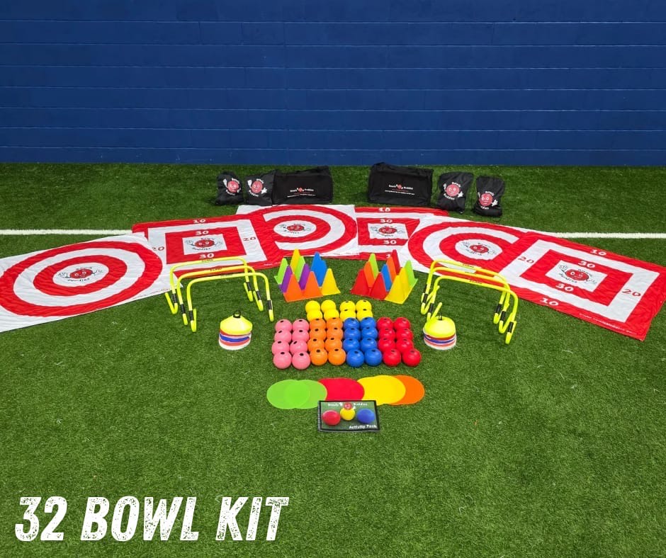 This kit contains everything you need to entertain a whole class or large group, containing 32 bowls (colour of your choice), 8 jacks and lots of equipment. A massive saving of over £523 when you buy this equipment as a kit. You can also increase the size of the kit to XL size to include as extras two Bowls Catchers and a large 200cm x 200cm Target Mat.