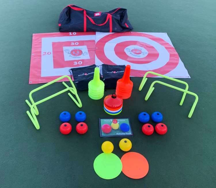 In addition to our bowls this kit contains two of our popular large 2 metre square target mats. which make it easier for children to land their bowls on. A handy Bowls Buddies Branded Holdall is provided to store the kit in. Plenty of activities for children produced by the Youth Sports Trust can be found on the Bowls Development Alliance (BDA) website.
